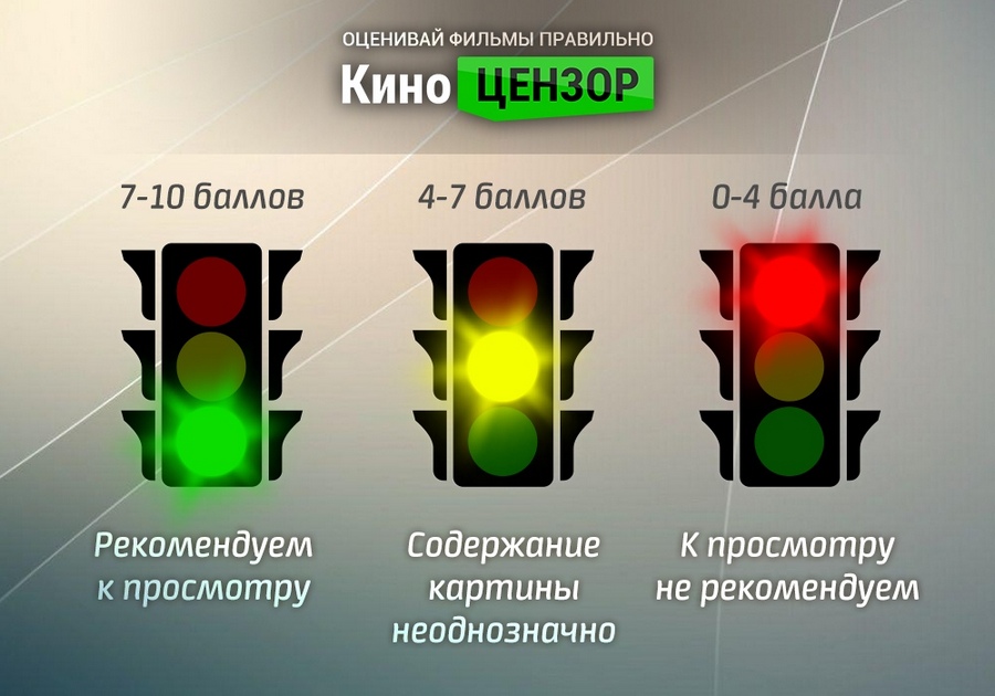 Наверное, многие уже заметили, что одной из стилистических и смысловых особенностей оформления КиноЦензора – служит светофор в верхнем правом углу сайта. На страницах с фильмом он загорается зелёным, жёлтым или красным светом в зависимости от того, как фильм оценили пользователи сайта и какая у него итоговая оценка.